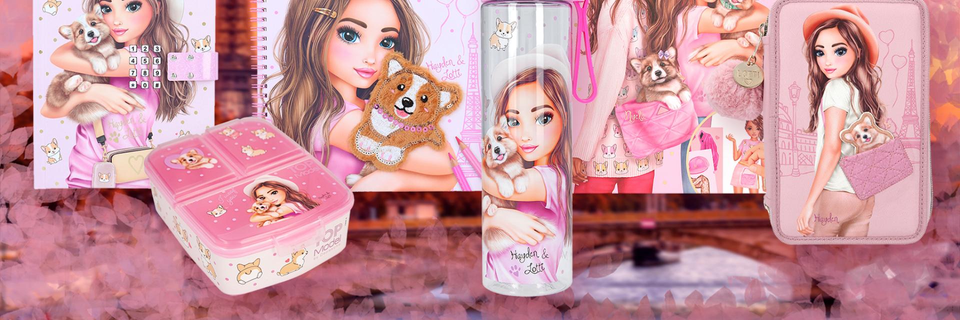 TOPModel sin helt nye kolleksjon Corgi er prydet av den skjønne og lojale corgien Lotti, og den ambisiøse og eventyrlystne TOPModellen Hayden, i Paris. Kolleksjonen inneholder alt du trenger til skole og fritid; trippelt pennal fylt med massevis av innhold, aktivitetsbøker som skyter fart på kreativiteten, dagbok til hemmeligheter og drømmer, drikkeflaske med hank og drikketut som forhindrer søl og smuss, og matboks med praktisk inndeling til et variert måltid. Med både praktiske løsninger og nydelig design i rosa og gull detaljer, er denne kolleksjonen den perfekte gavepakke å gi!